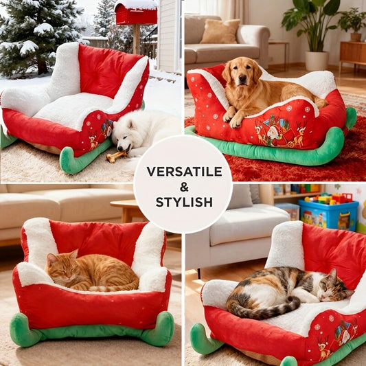 Christmas sled dog bed and dog house-winter warm pet bed, detachable and washable, without assembly, comfortable/outdoor pet sofa, suitable for cats and small dogs, snow house design.